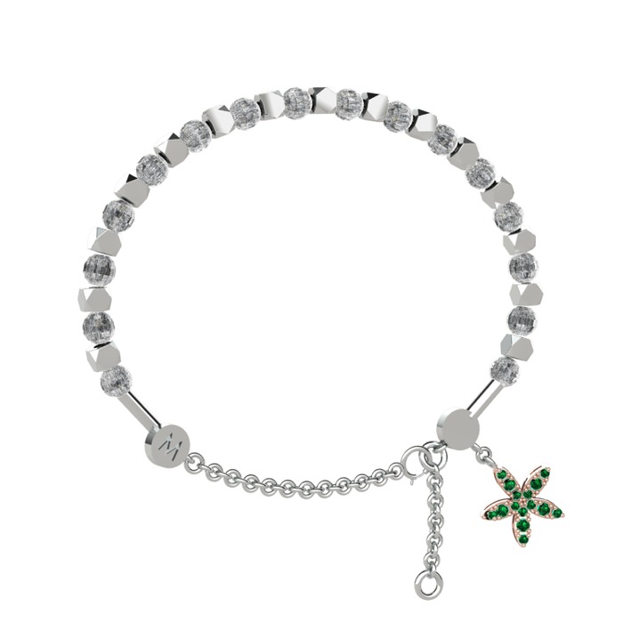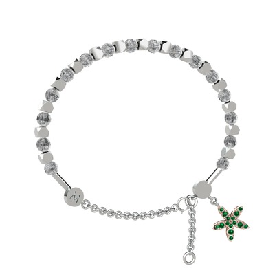 Beyaz zirkon ve yeşil kuvars 14 ayar beyaz altın bilezik