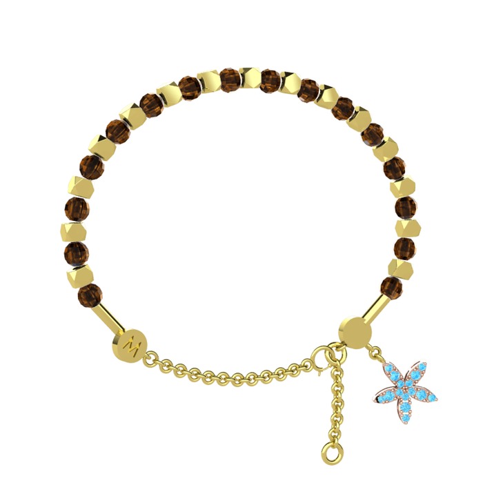 Dumanlı kuvars ve akuamarin 18 ayar altın bilezik