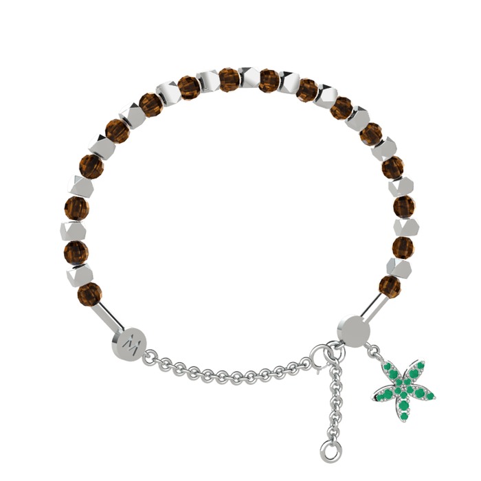 Dumanlı kuvars ve kök zümrüt 14 ayar beyaz altın bilezik