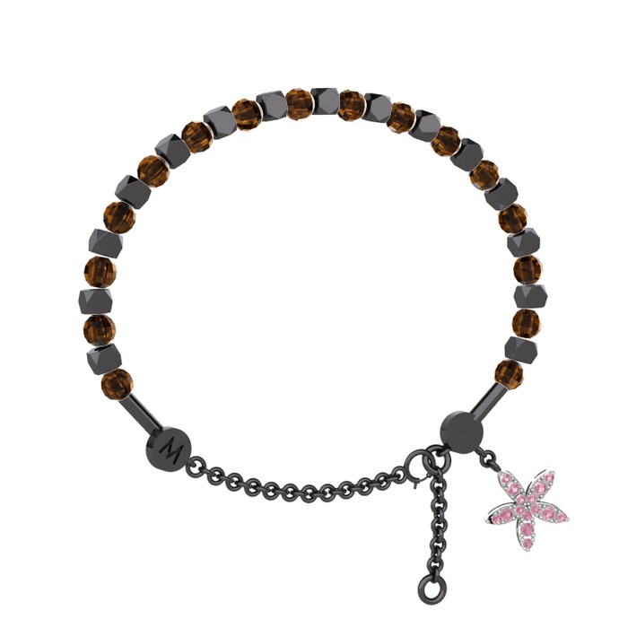 Dumanlı kuvars ve pembe kuvars 925 ayar siyah rodyum kaplama gümüş bilezik