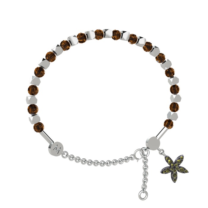 Dumanlı kuvars ve peridot 8 ayar beyaz altın bilezik