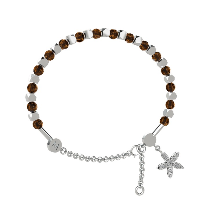 Dumanlı kuvars ve pırlanta 925 ayar gümüş bilezik (0.3 karat)