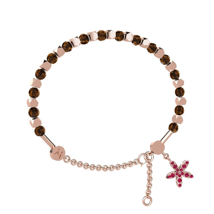 Dumanlı kuvars ve rodolit garnet 8 ayar rose altın bilezik