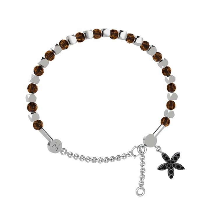 Dumanlı kuvars ve siyah zirkon 8 ayar beyaz altın bilezik