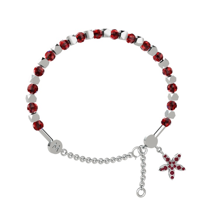 Garnet ve kök yakut 8 ayar beyaz altın bilezik