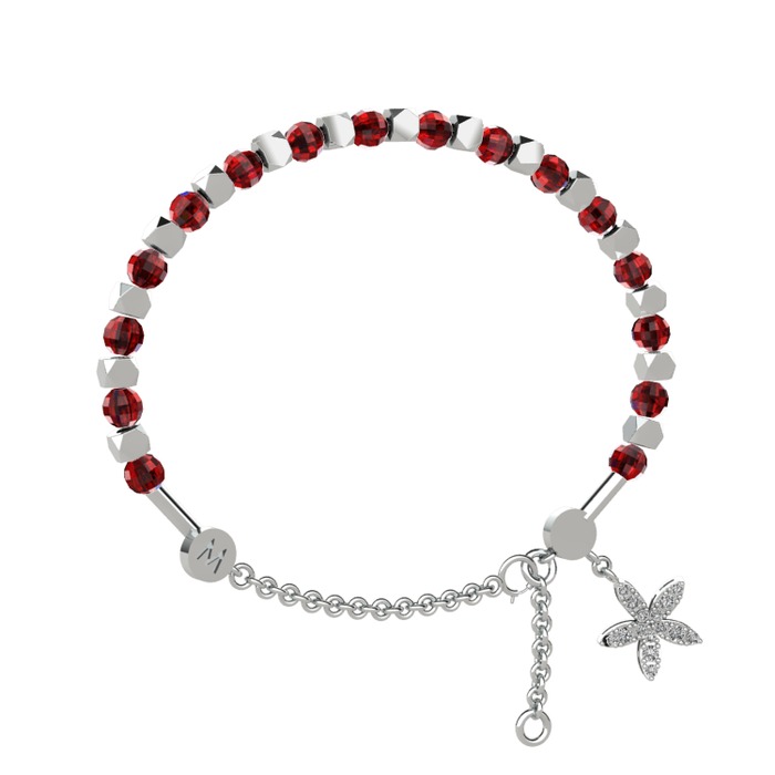 Garnet ve pırlanta 18 ayar beyaz altın bilezik (0.3 karat)