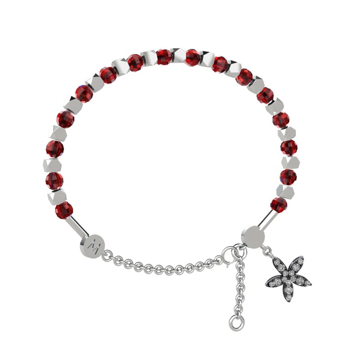 Garnet ve pırlanta 8 ayar beyaz altın bilezik (0.3 karat)
