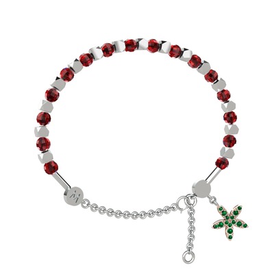 Garnet ve yeşil kuvars 14 ayar beyaz altın bilezik