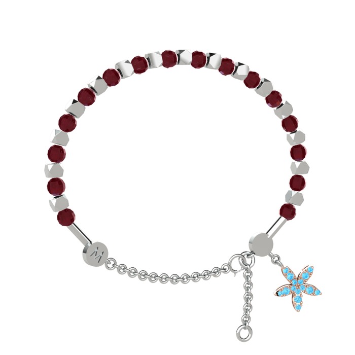 Mitra Yasemin Çiçeği Bilezik - Kök yakut ve akuamarin 14 ayar beyaz altın bilezik