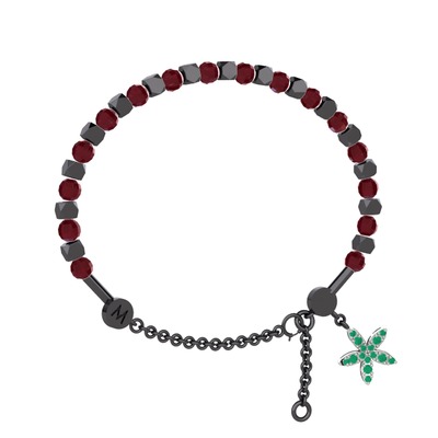 Mitra Yasemin Çiçeği Bilezik - Kök yakut ve kök zümrüt 925 ayar siyah rodyum kaplama gümüş bilezik