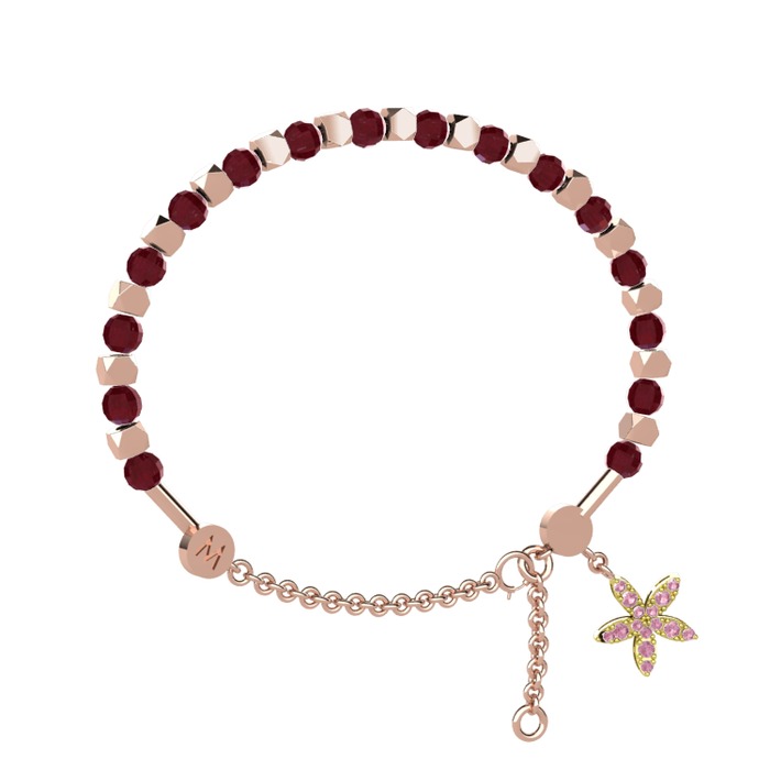 Kök yakut ve pembe kuvars 925 ayar rose altın kaplama gümüş bilezik