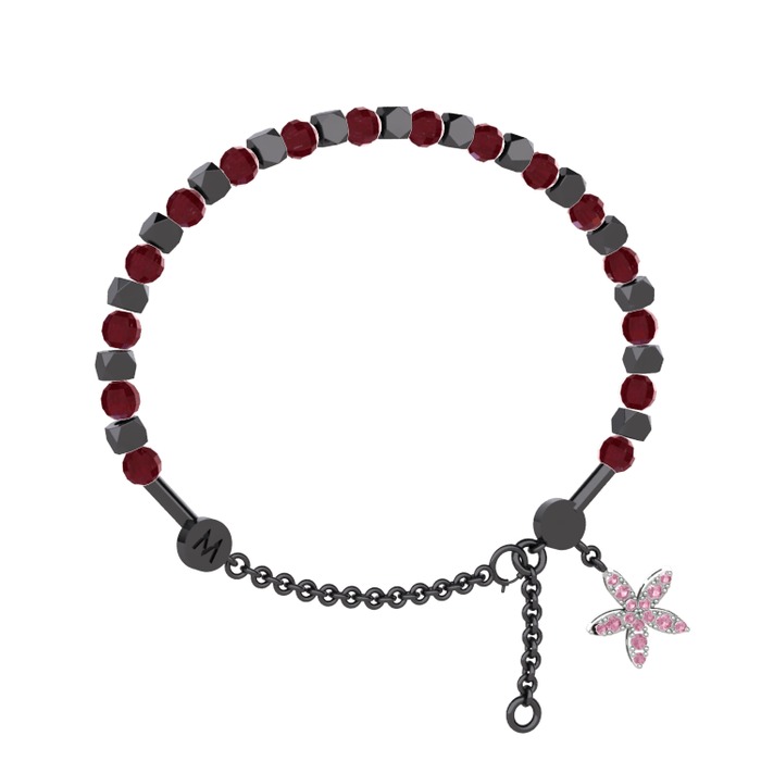 Kök yakut ve pembe kuvars 925 ayar siyah rodyum kaplama gümüş bilezik
