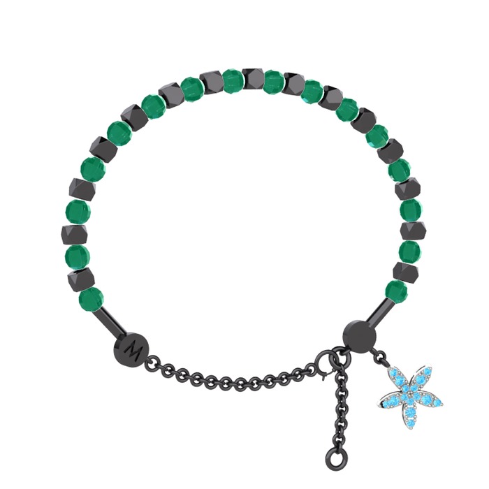 Kök zümrüt ve akuamarin 925 ayar siyah rodyum kaplama gümüş bilezik