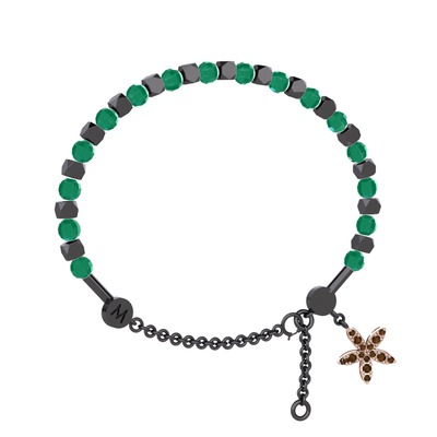 Kök zümrüt ve dumanlı kuvars 925 ayar siyah rodyum kaplama gümüş bilezik