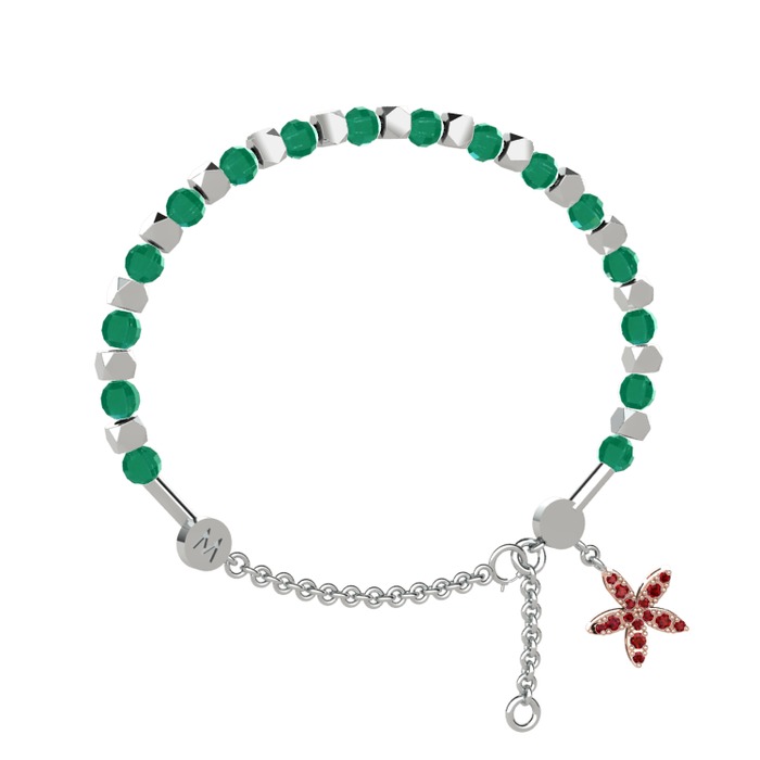 Kök zümrüt ve garnet 18 ayar beyaz altın bilezik