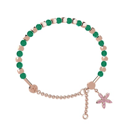 Kök zümrüt ve pembe kuvars 18 ayar rose altın bilezik