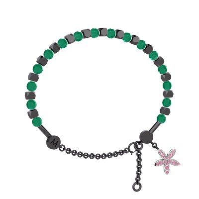 Kök zümrüt ve pembe kuvars 925 ayar siyah rodyum kaplama gümüş bilezik