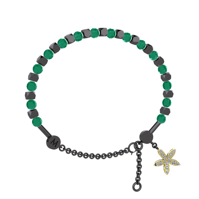 Kök zümrüt ve pırlanta 925 ayar siyah rodyum kaplama gümüş bilezik (0.3 karat)