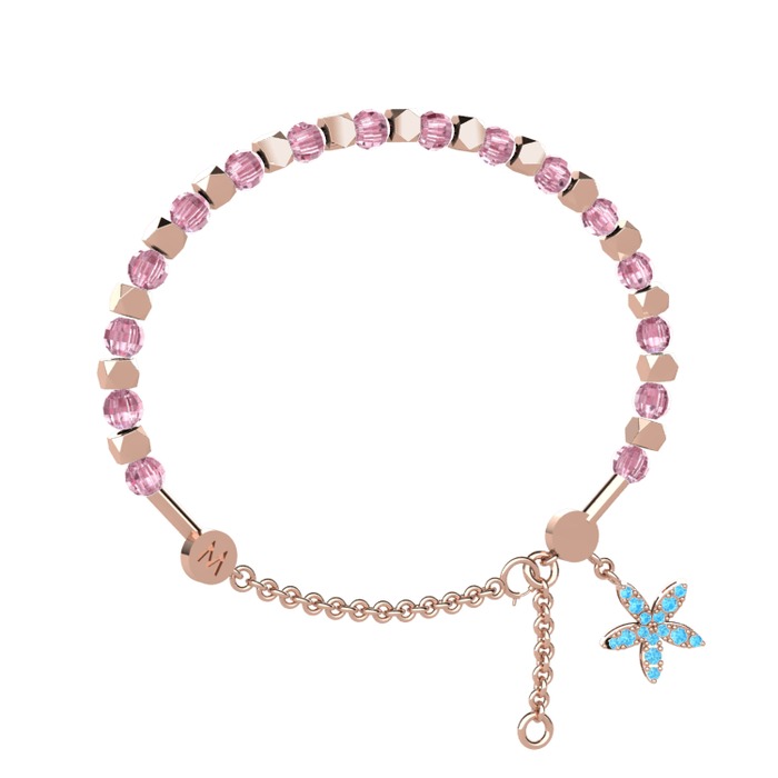 Pembe kuvars ve akuamarin 8 ayar rose altın bilezik