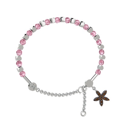 Pembe kuvars ve dumanlı kuvars 8 ayar beyaz altın bilezik