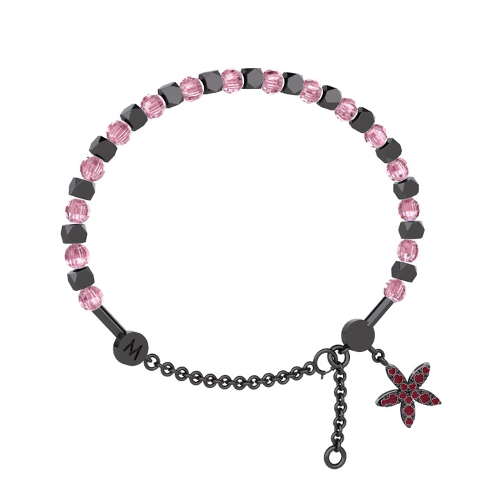 Pembe kuvars ve kök yakut 925 ayar siyah rodyum kaplama gümüş bilezik