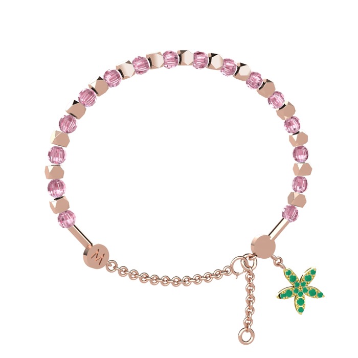 Pembe kuvars ve kök zümrüt 18 ayar rose altın bilezik
