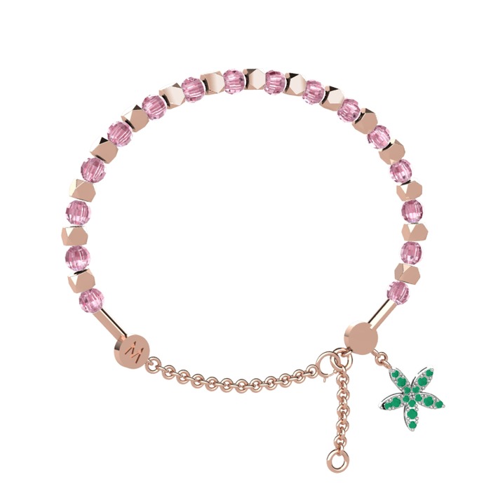Pembe kuvars ve kök zümrüt 8 ayar rose altın bilezik