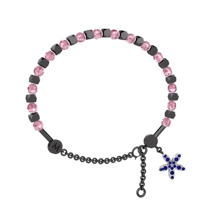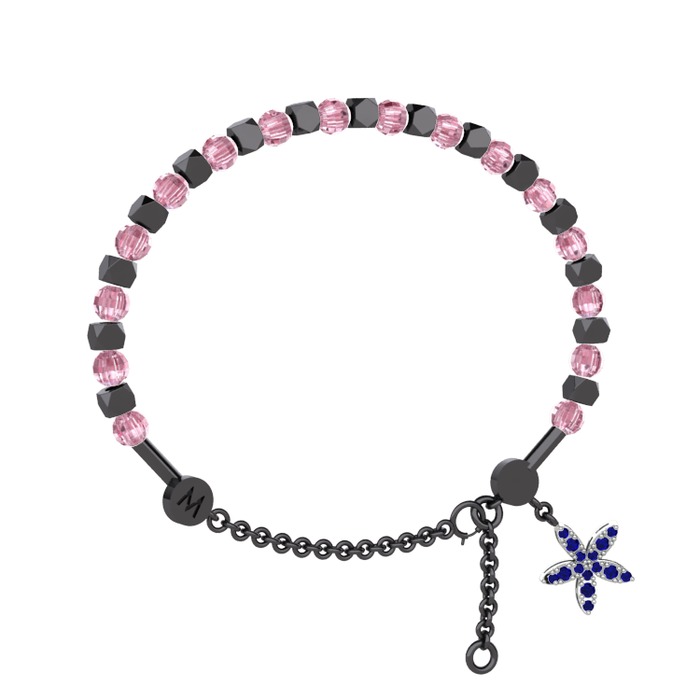 Pembe kuvars ve lab safir 925 ayar siyah rodyum kaplama gümüş bilezik