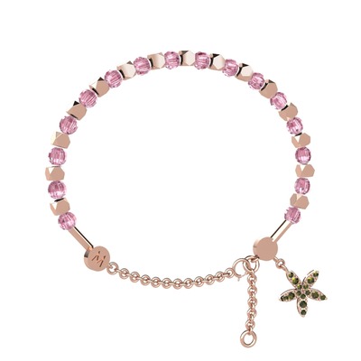 Pembe kuvars ve peridot 8 ayar rose altın bilezik