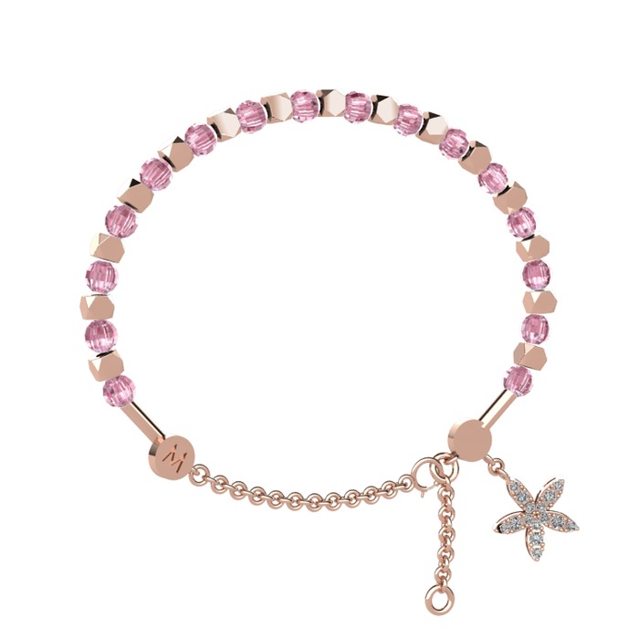 Pembe kuvars ve pırlanta 14 ayar rose altın bilezik (0.3 karat)