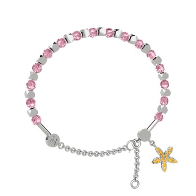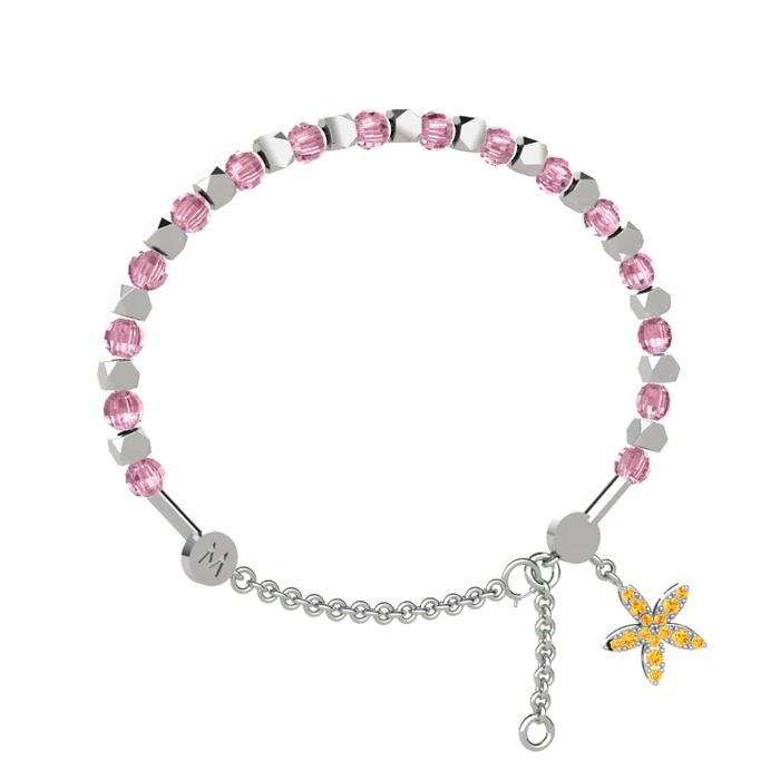 Pembe kuvars ve sitrin 14 ayar beyaz altın bilezik
