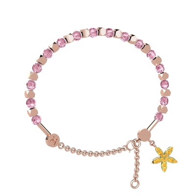 Pembe kuvars ve sitrin 8 ayar rose altın bilezik