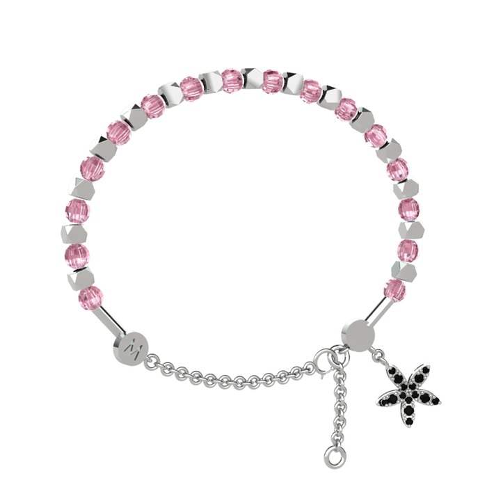 Pembe kuvars ve siyah zirkon 18 ayar beyaz altın bilezik