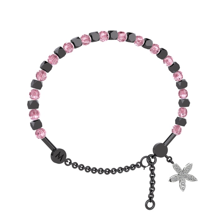 Pembe kuvars ve swarovski 925 ayar siyah rodyum kaplama gümüş bilezik