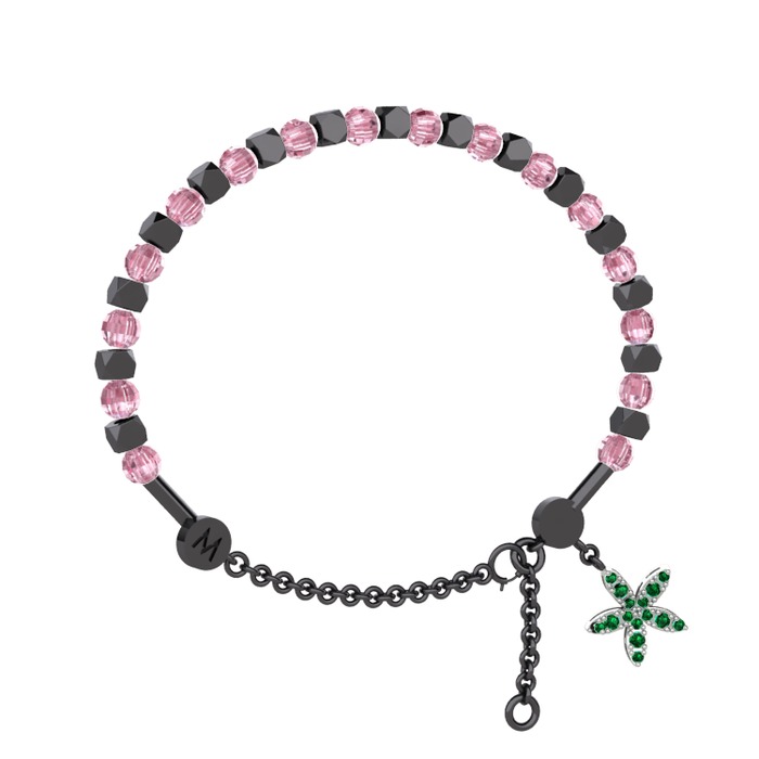 Pembe kuvars ve yeşil kuvars 925 ayar siyah rodyum kaplama gümüş bilezik