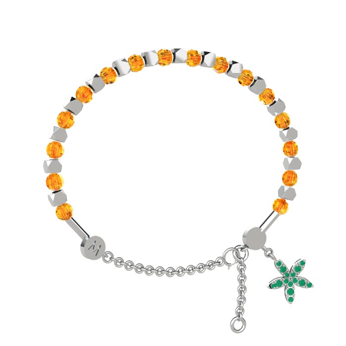 Sitrin ve kök zümrüt 14 ayar beyaz altın bilezik
