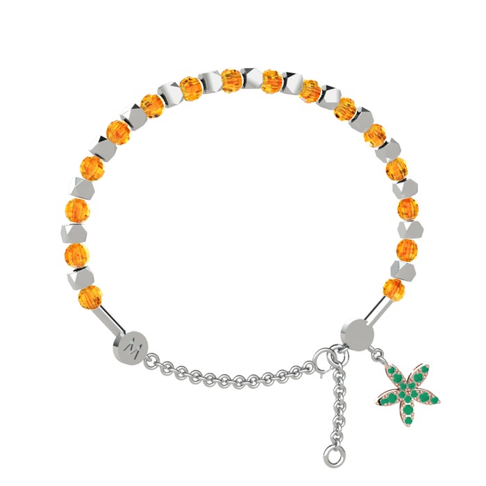 Sitrin ve kök zümrüt 18 ayar beyaz altın bilezik