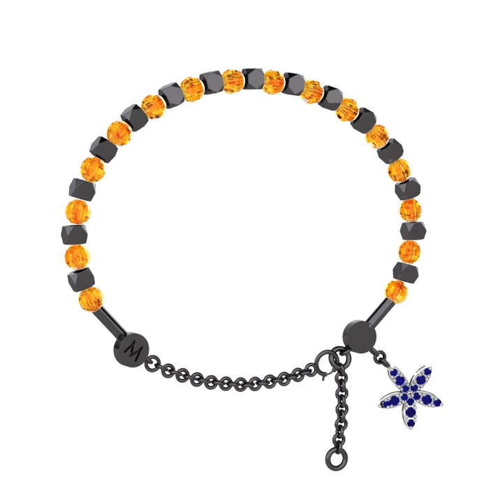 Sitrin ve lab safir 925 ayar siyah rodyum kaplama gümüş bilezik