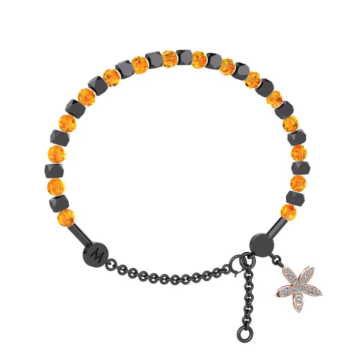 Sitrin ve swarovski 925 ayar siyah rodyum kaplama gümüş bilezik