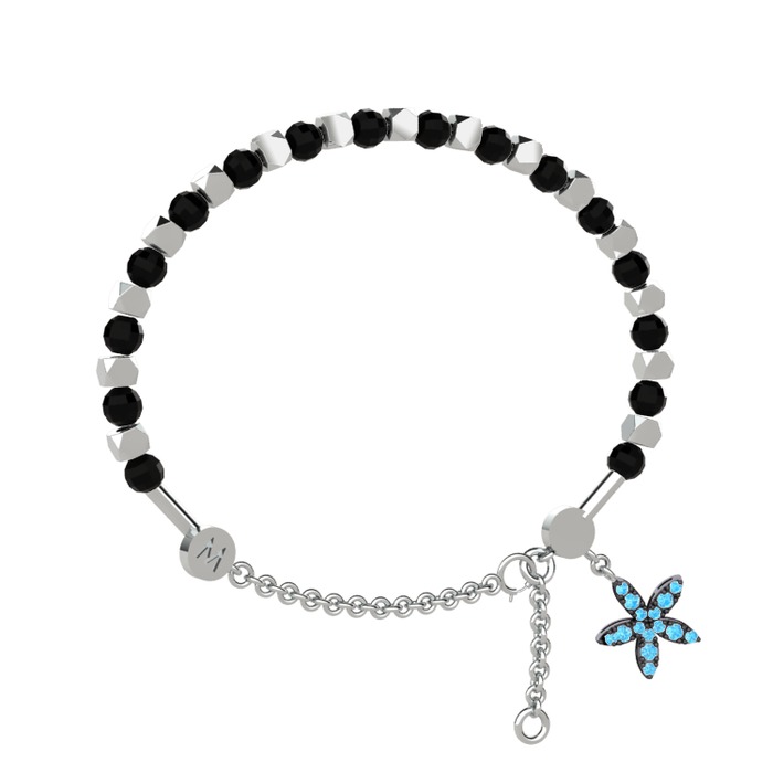 Siyah zirkon ve akuamarin 14 ayar beyaz altın bilezik