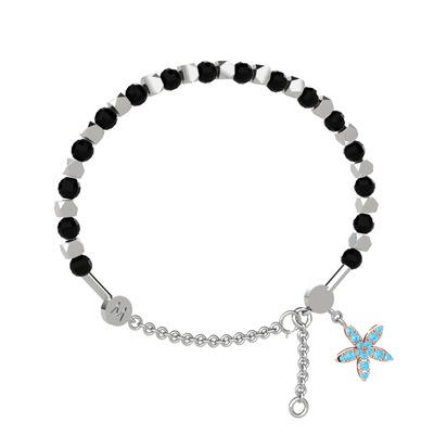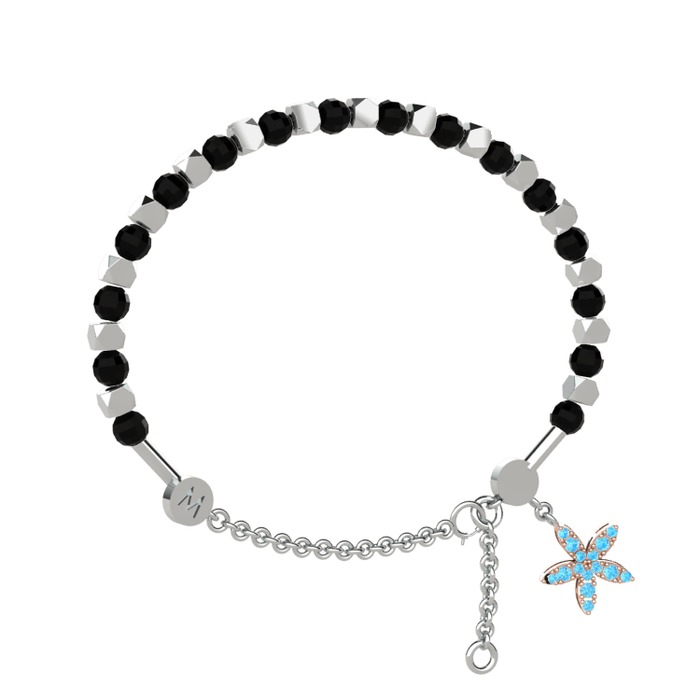 Siyah zirkon ve akuamarin 14 ayar beyaz altın bilezik