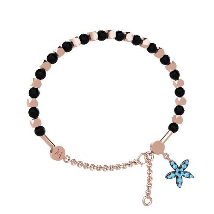Siyah zirkon ve akuamarin 14 ayar rose altın bilezik