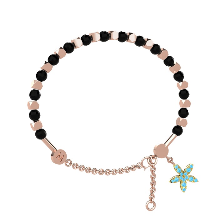 Siyah zirkon ve akuamarin 14 ayar rose altın bilezik