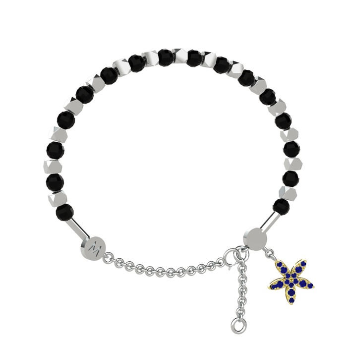 Siyah zirkon ve lab safir 14 ayar beyaz altın bilezik
