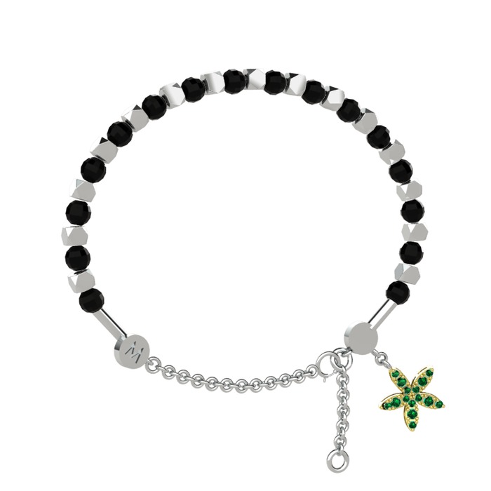 Siyah zirkon ve yeşil kuvars 14 ayar beyaz altın bilezik