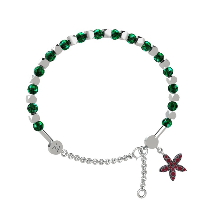 Yeşil kuvars ve kök yakut 14 ayar beyaz altın bilezik