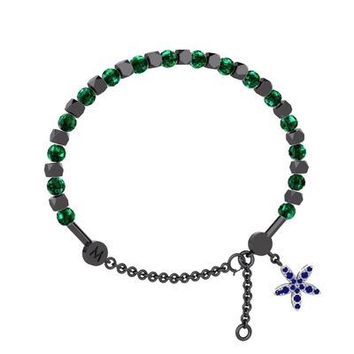 Yeşil kuvars ve lab safir 925 ayar siyah rodyum kaplama gümüş bilezik