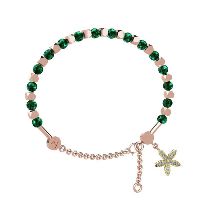 Yeşil kuvars ve pırlanta 925 ayar rose altın kaplama gümüş bilezik (0.3 karat)