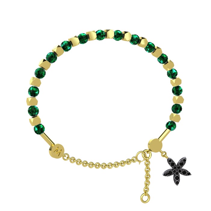 Yeşil kuvars ve siyah zirkon 925 ayar altın kaplama gümüş bilezik