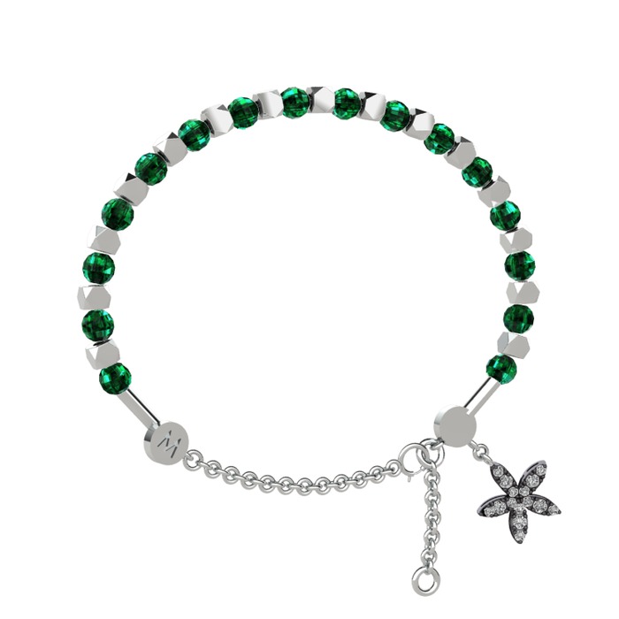 Yeşil kuvars ve swarovski 14 ayar beyaz altın bilezik